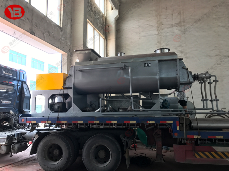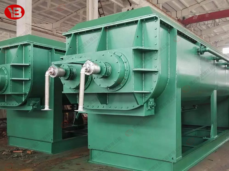 空心軸上密集排列著楔型中空漿葉,熱介質(zhì)經(jīng)空心軸流經(jīng)漿葉。單位有效容積內(nèi)傳熱面積很大,熱介質(zhì)溫度從-40℃到320℃,可以是水蒸汽,也可以是液體型:如熱水、導(dǎo)熱油等。間接傳導(dǎo)加熱,沒有攜帶空氣帶走熱量,熱量均用來加熱物料。熱量損失僅為通過器體保溫層向環(huán)境的散熱。楔型漿葉傳熱面具有自清潔功能。物料顆粒與楔型面的相對(duì)運(yùn)動(dòng)產(chǎn)生洗刷作用,能夠洗刷掉楔型面上附著物料,使運(yùn)轉(zhuǎn)中一直保持著清潔的傳熱面。漿葉干燥機(jī)的殼體為Ω型,殼體內(nèi)一般安排二到四根空心攪拌軸。殼體有密封端蓋與上蓋,防止物料粉塵外泄而充分發(fā)揮作用。